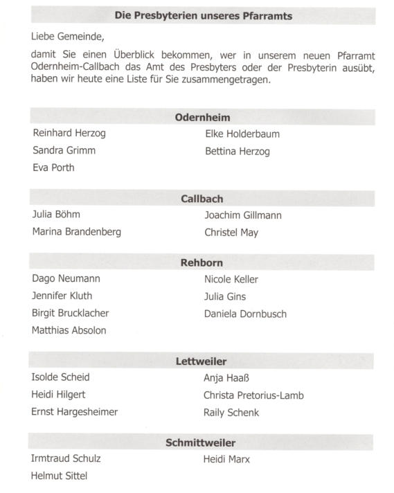 Callbach I Lettweiler I Odernheim I Rehborn I Schmittweiler